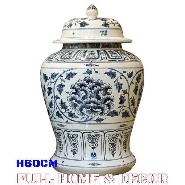 Chĩnh gốm Chu Đậu, hoa Phù Dung vẽ truyền thống, cao 60cm