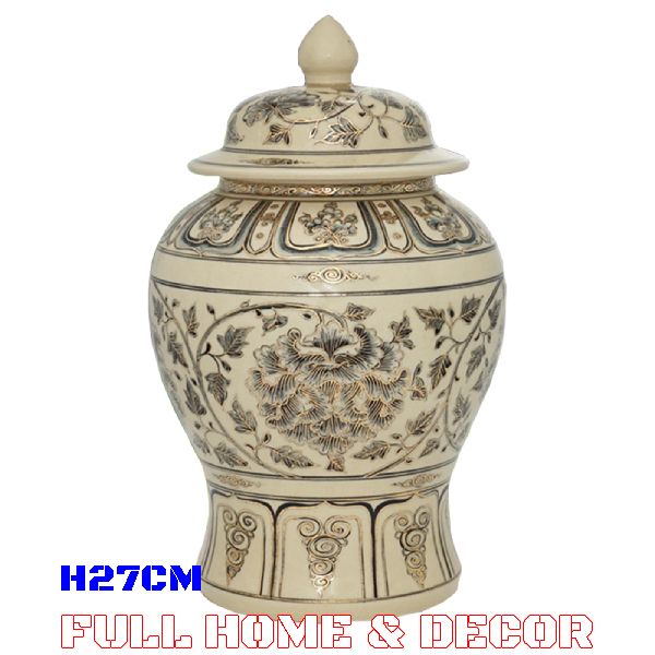 Chĩnh gốm Chu Đậu, họa tiết hoa Phù Dung vẽ vàng 24K, cao 27cm